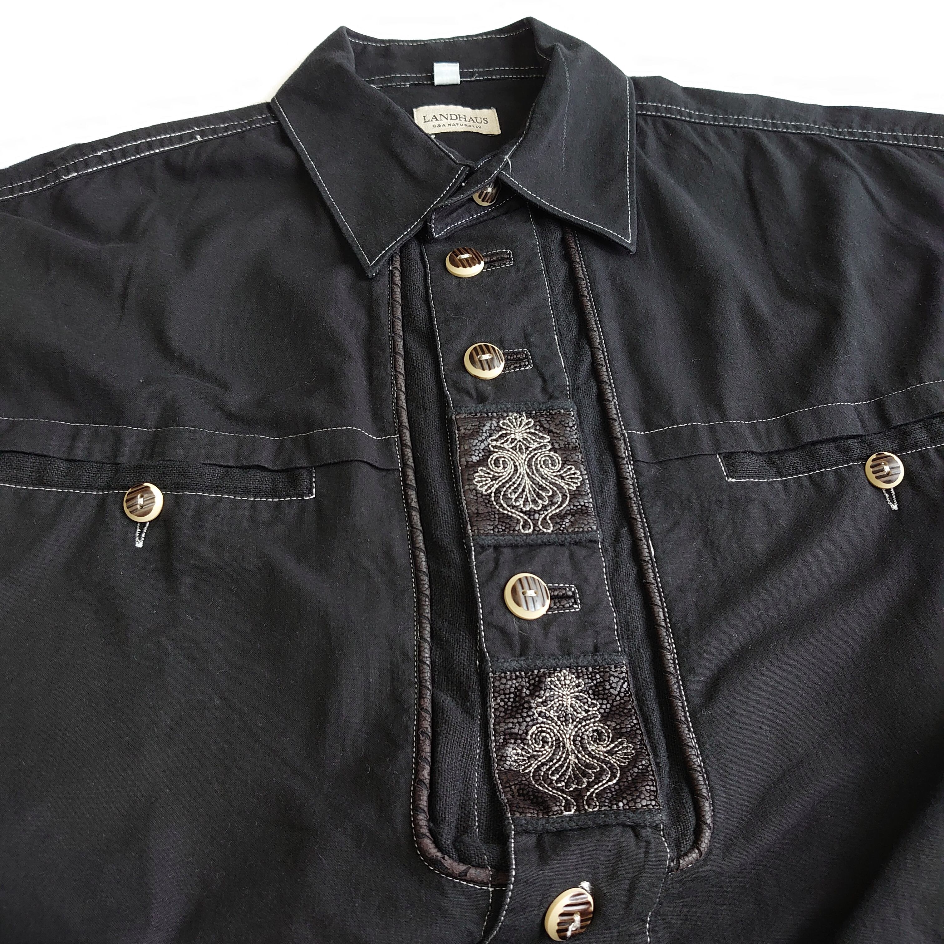 【黒染め】Tyrolean shirt チロリアンシャツ 後染め ブラック 刺繍