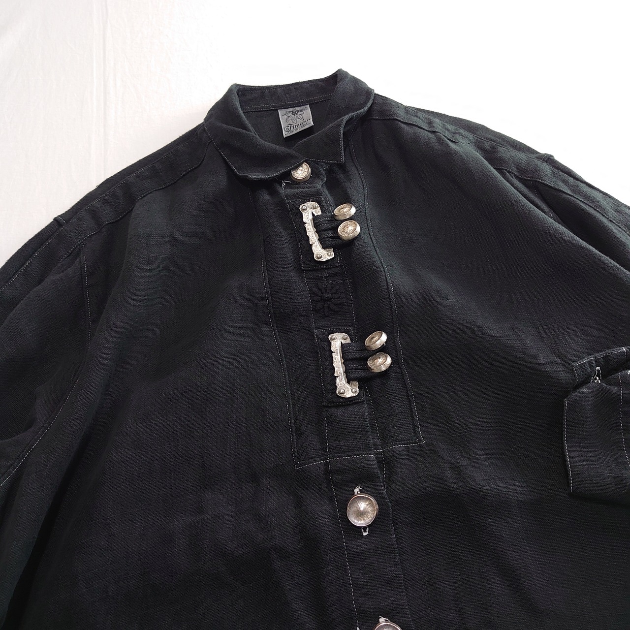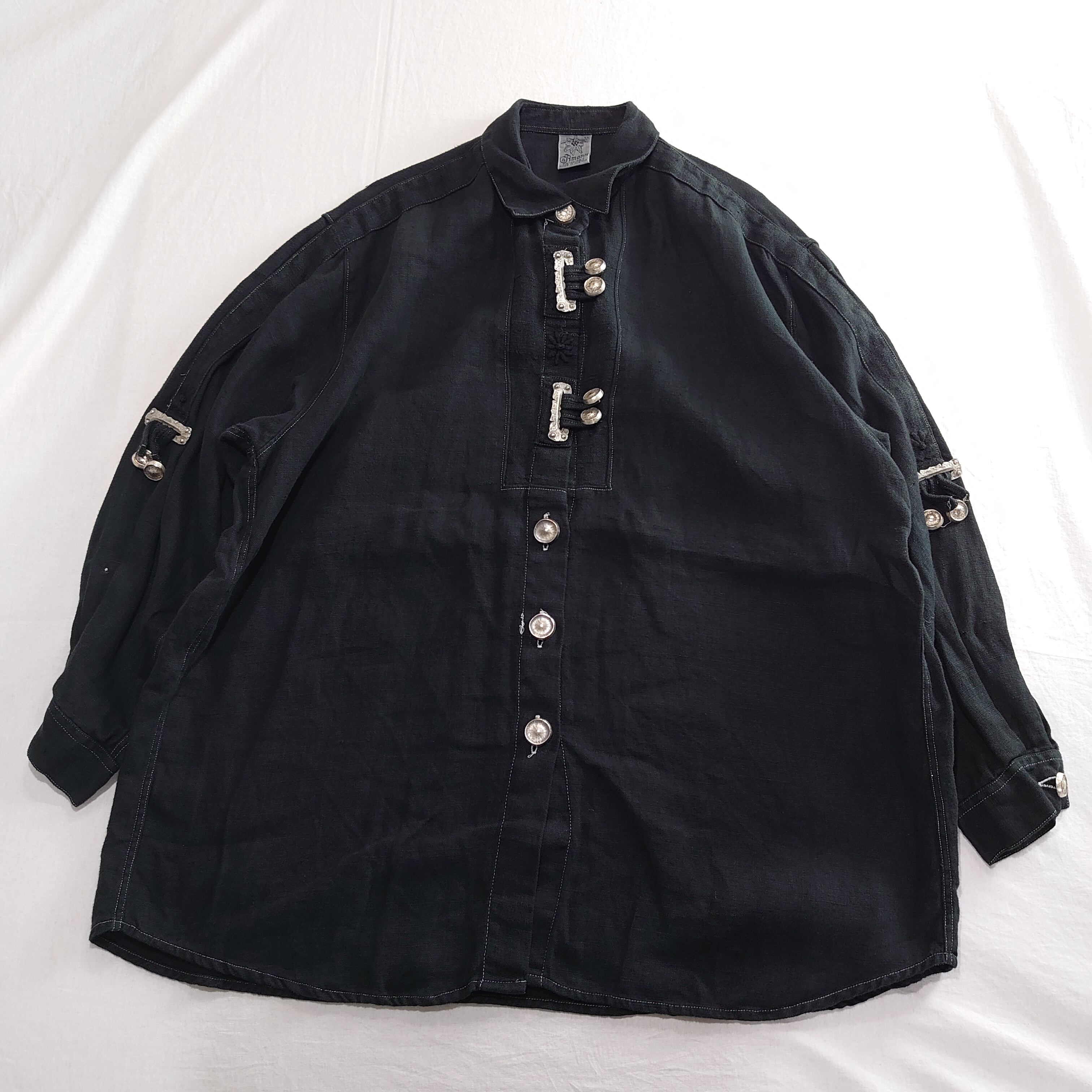 【リネン】Tyrolean shirt チロリアンシャツ 後染め 黒 メタル