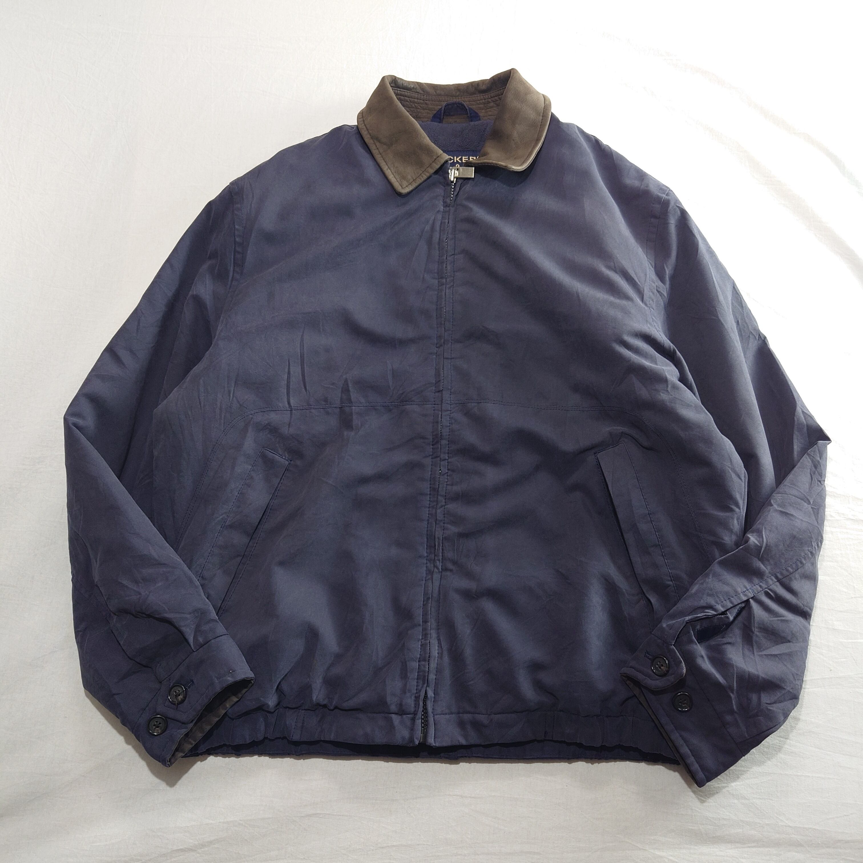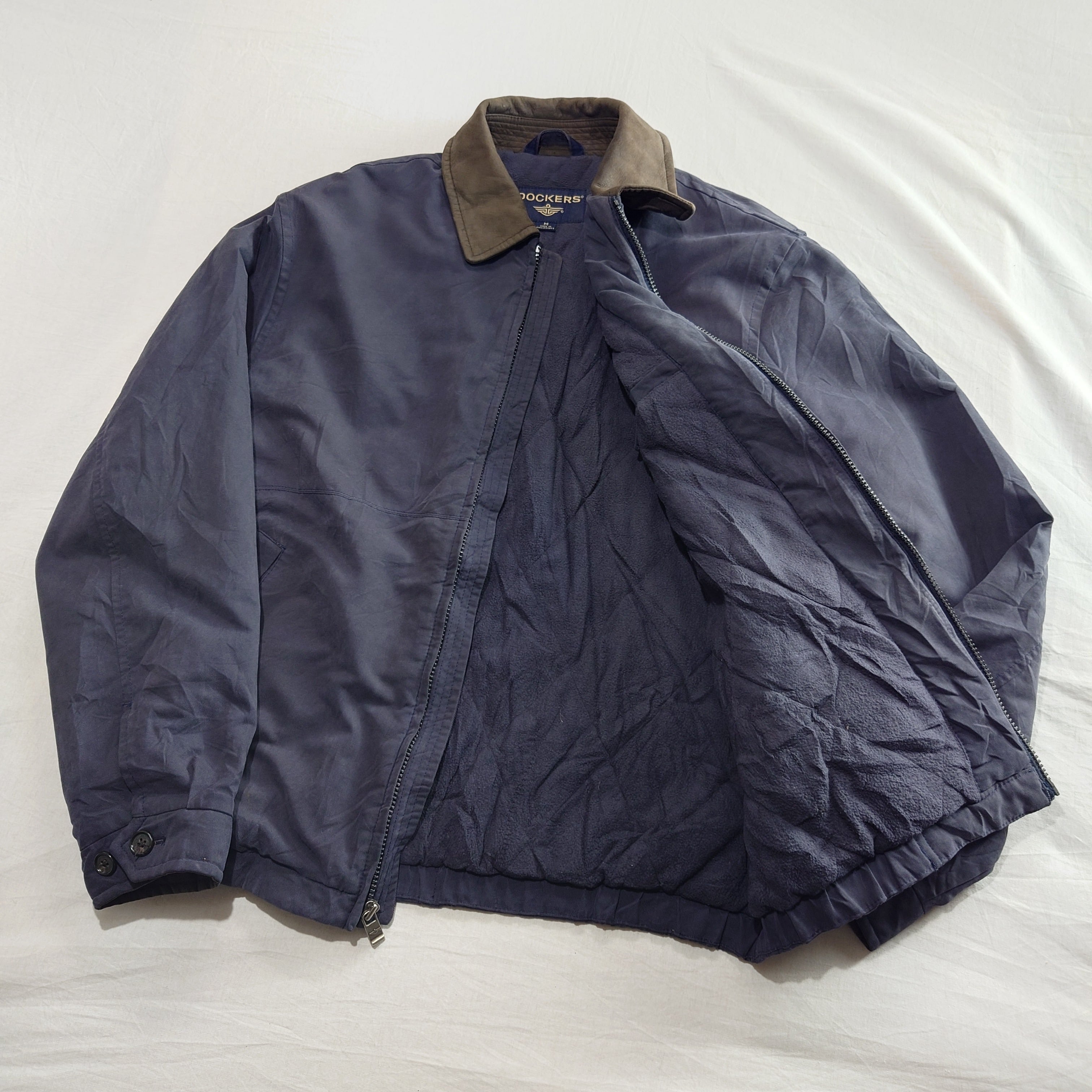 【雰囲気抜群】DOCKERS ブルゾンジャケット 襟レザー ネイビー 古着