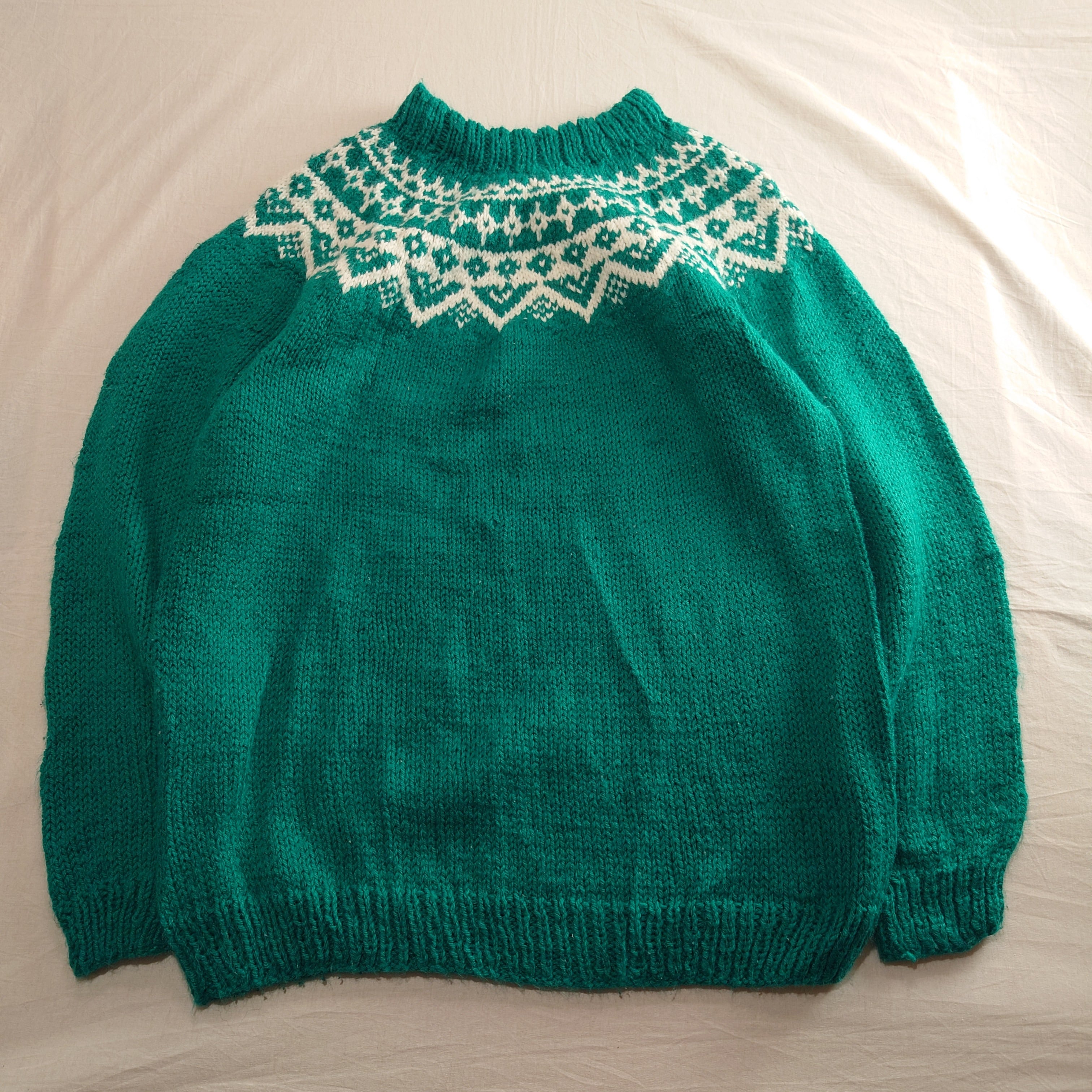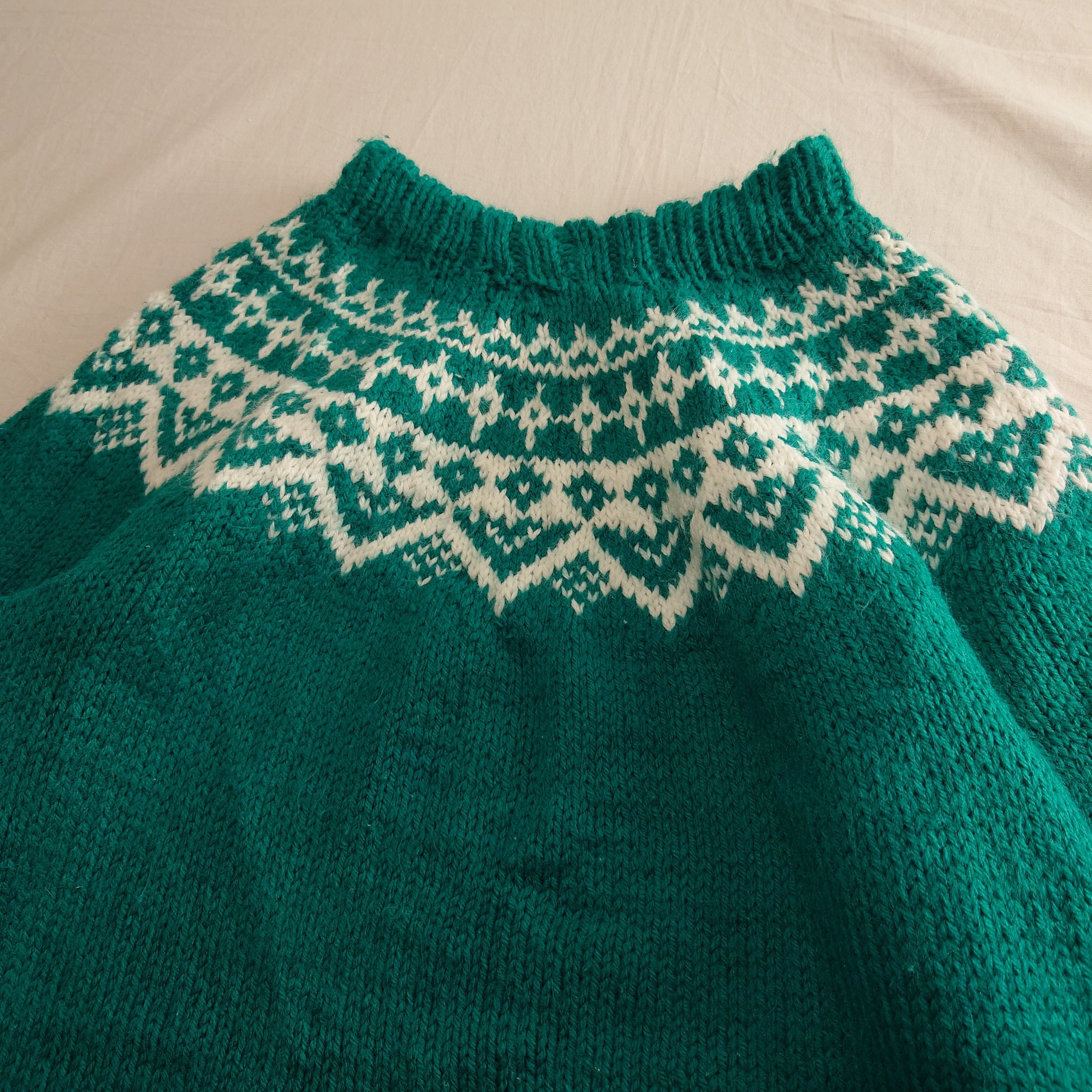 【激カワ】古着ノルディックセーター ライトグリーン 古着セーター 柄物