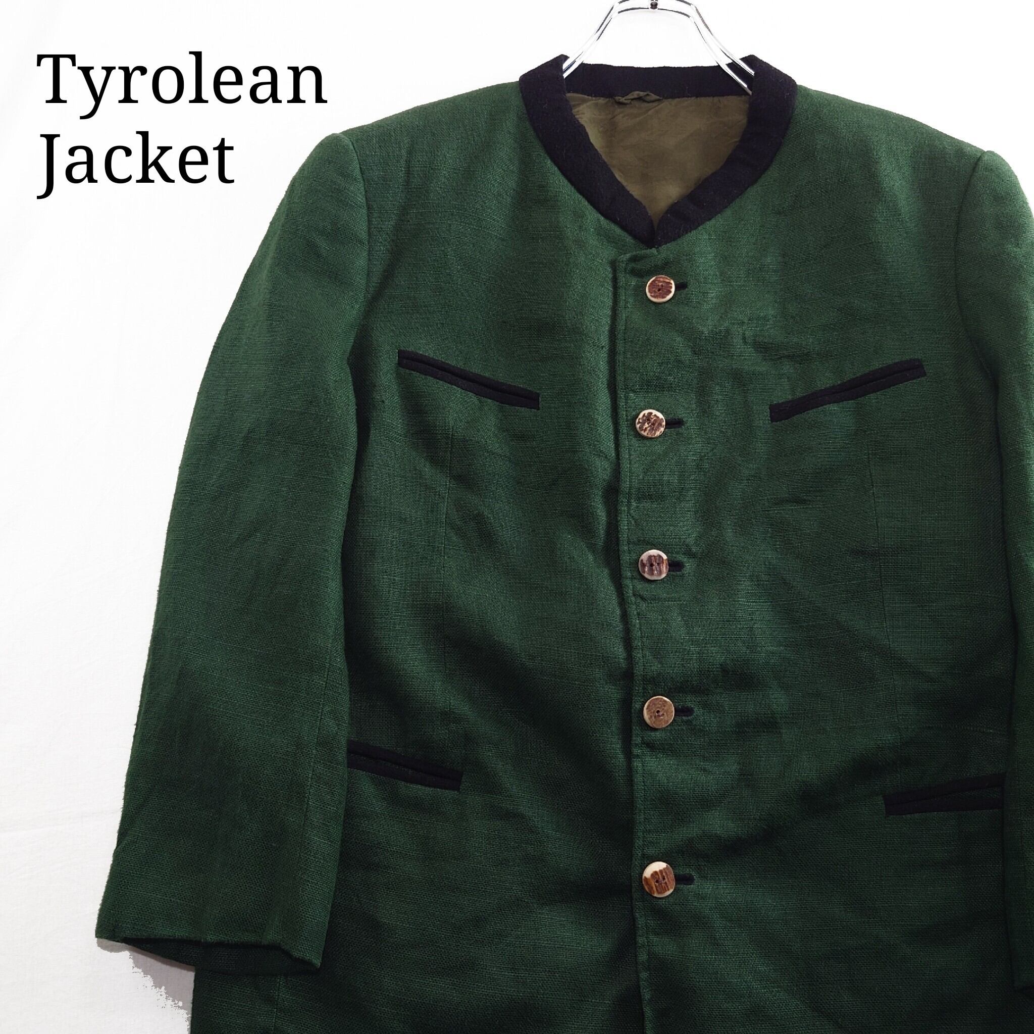 【雰囲気抜群】チロリアンジャケット ノーカラー リネンジャケット グリーン