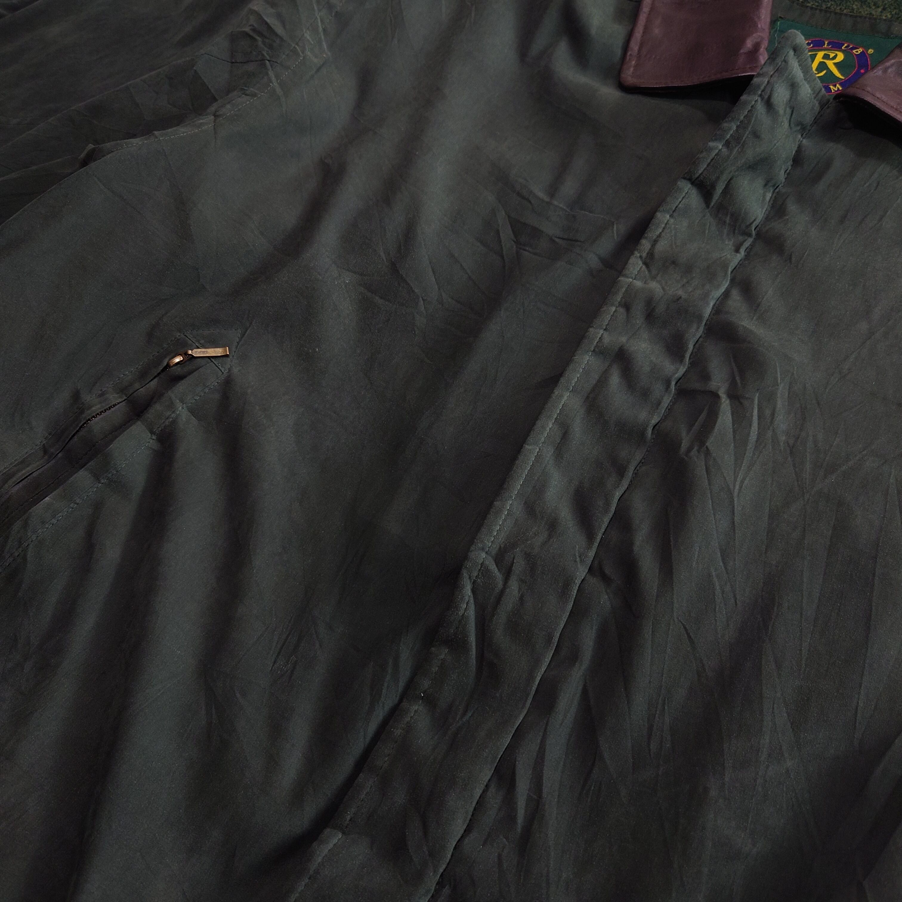 【雰囲気抜群】襟レザー ブルゾンジャケット グリーン 古着ジャケット