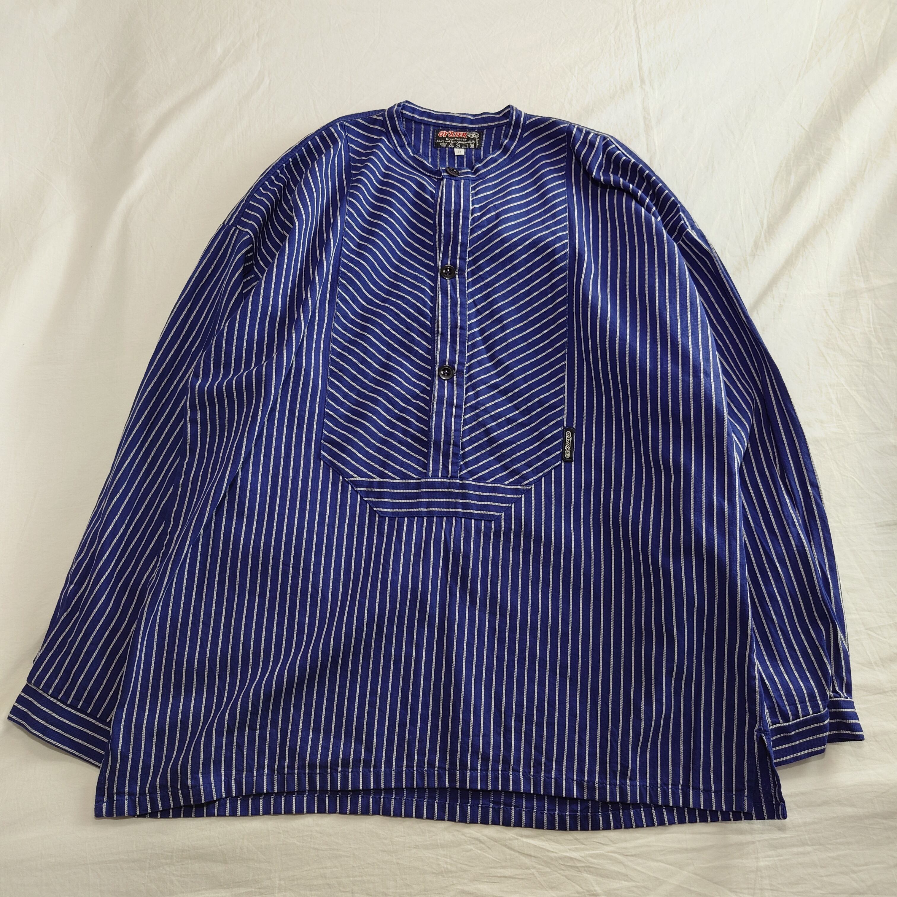 【雰囲気抜群】フィッシャーマンシャツ ストライプ プルオーバー 青 白