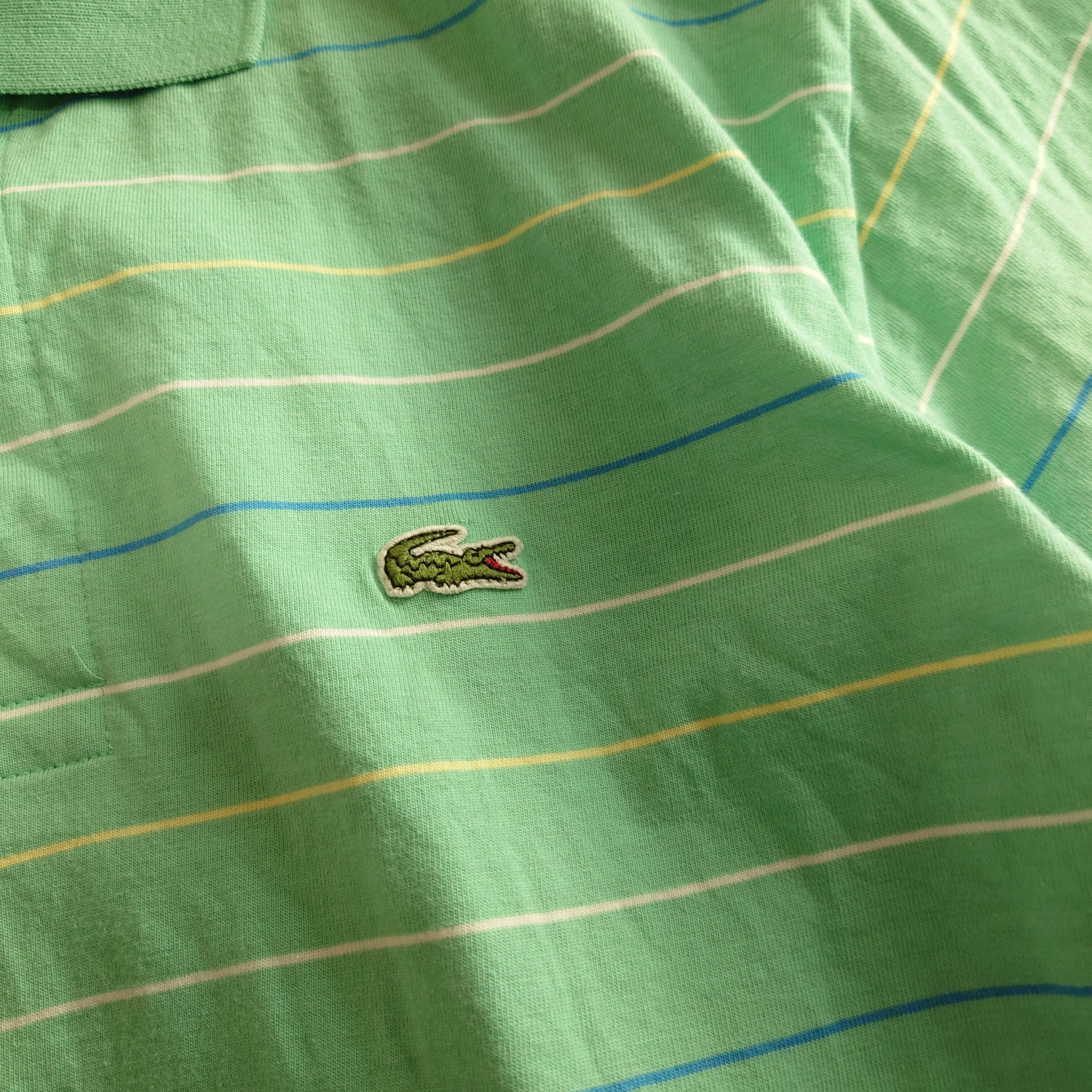 【フランス規格】LACOSTE ラコステ ボーダー柄ポロシャツ ワンポイント 緑