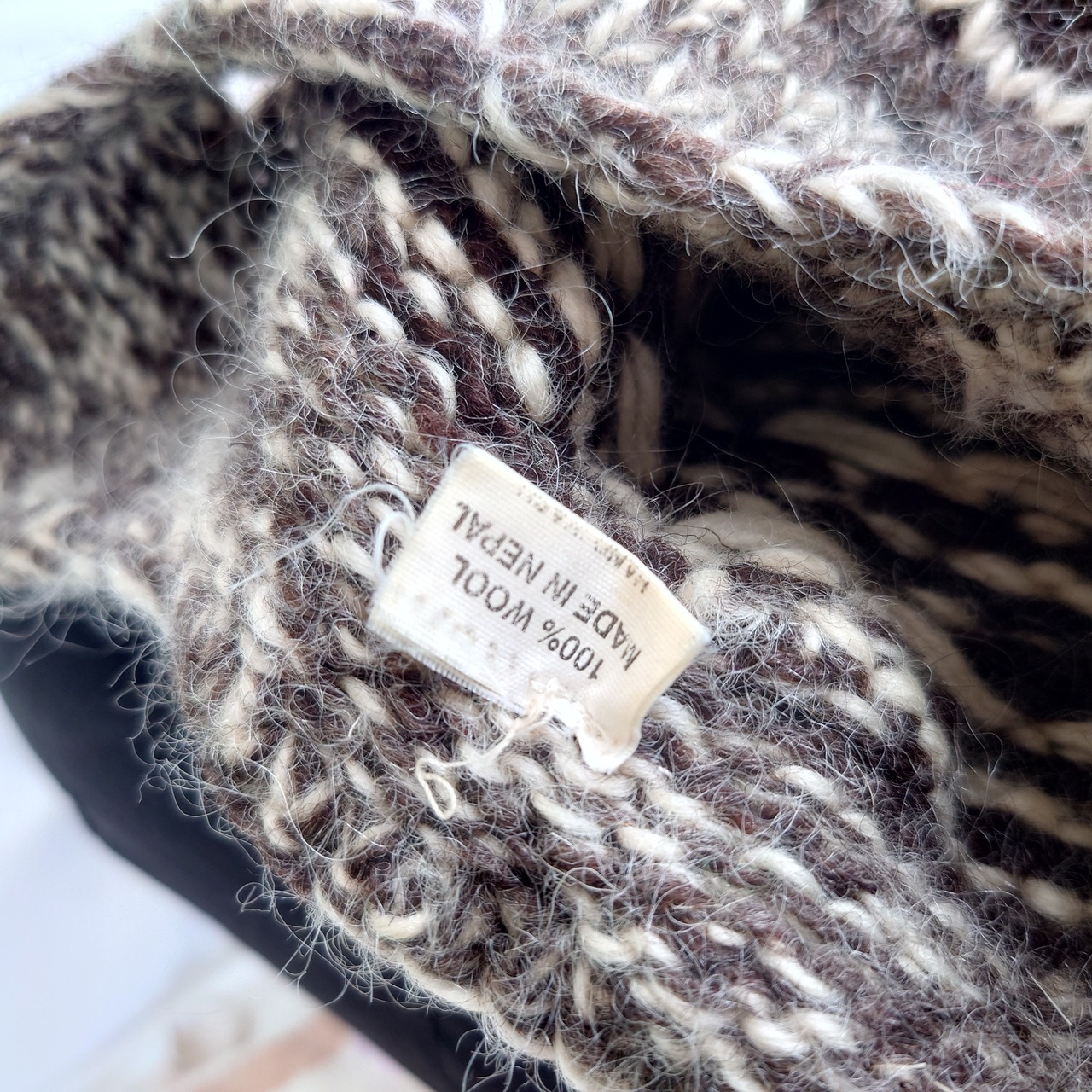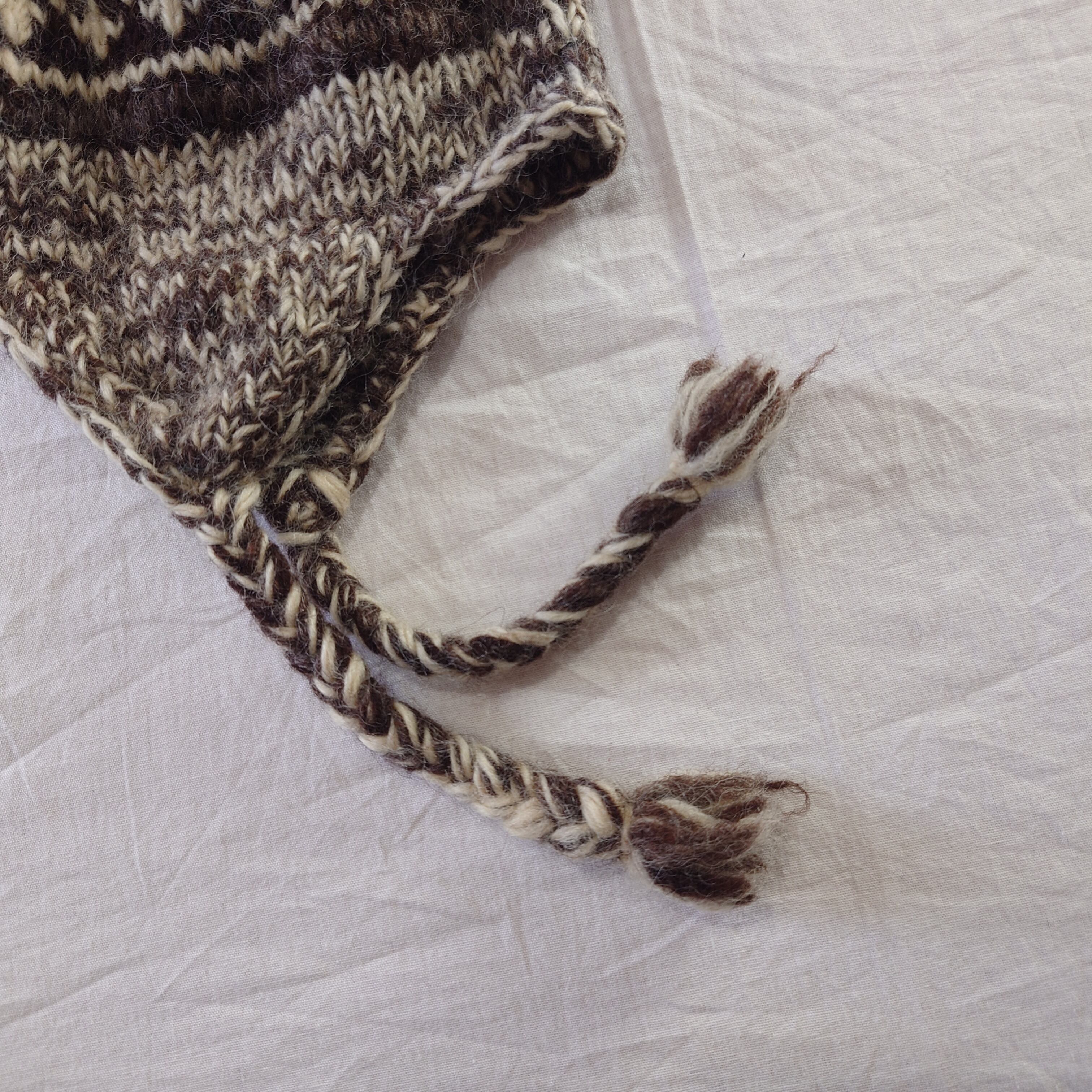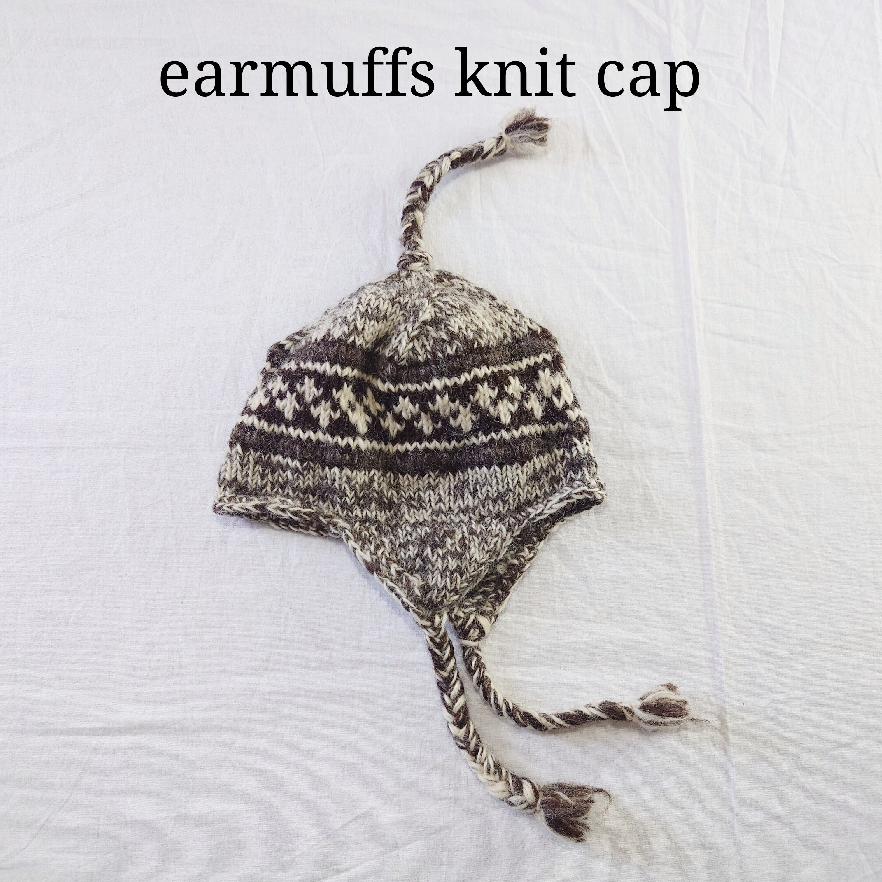 【ネパール製】イヤーマフニットキャップ ネイティブ柄 ヒッピー ブラウン 手編み