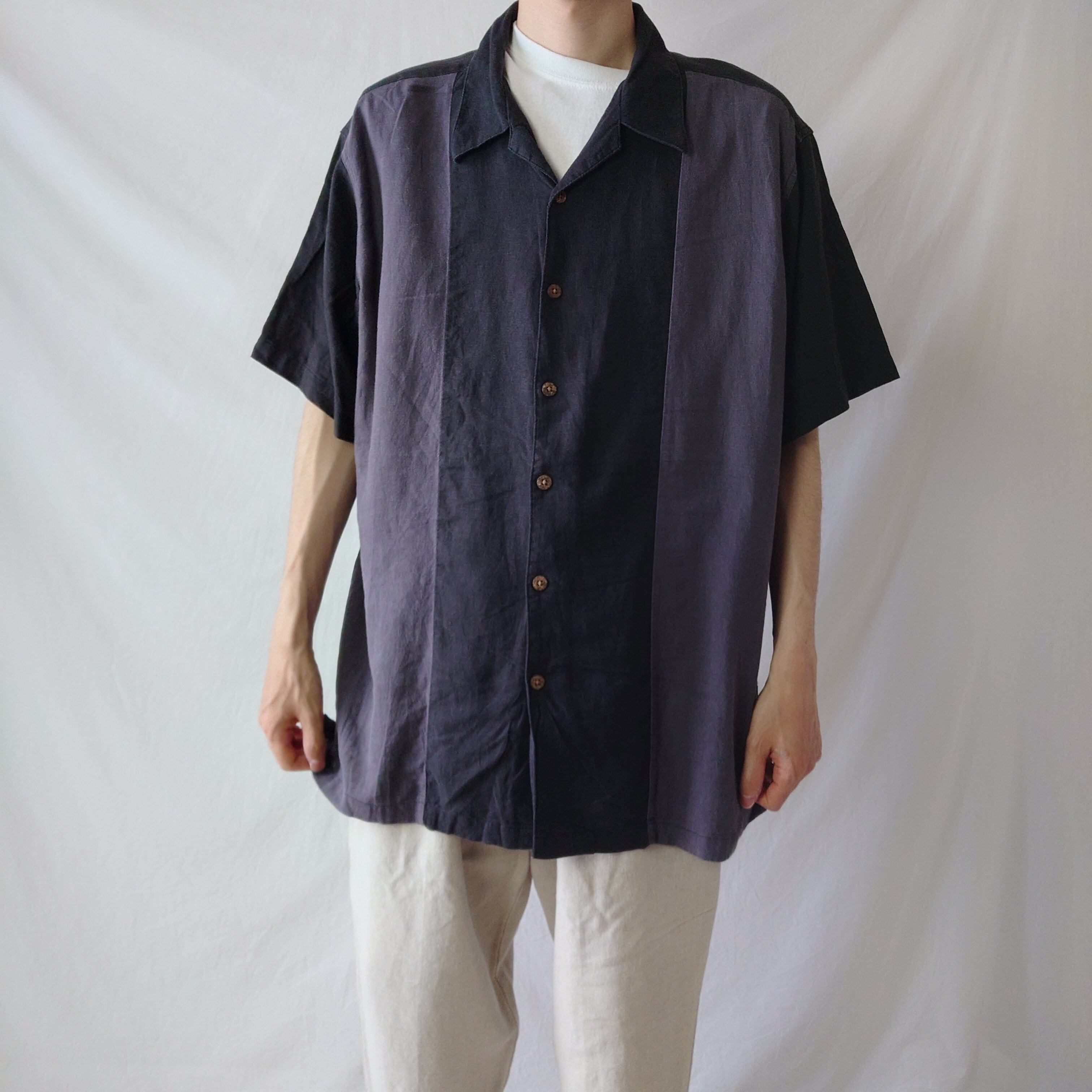 【90~00s】Haggar リネンレーヨン オープンカラーシャツ 開襟 黒