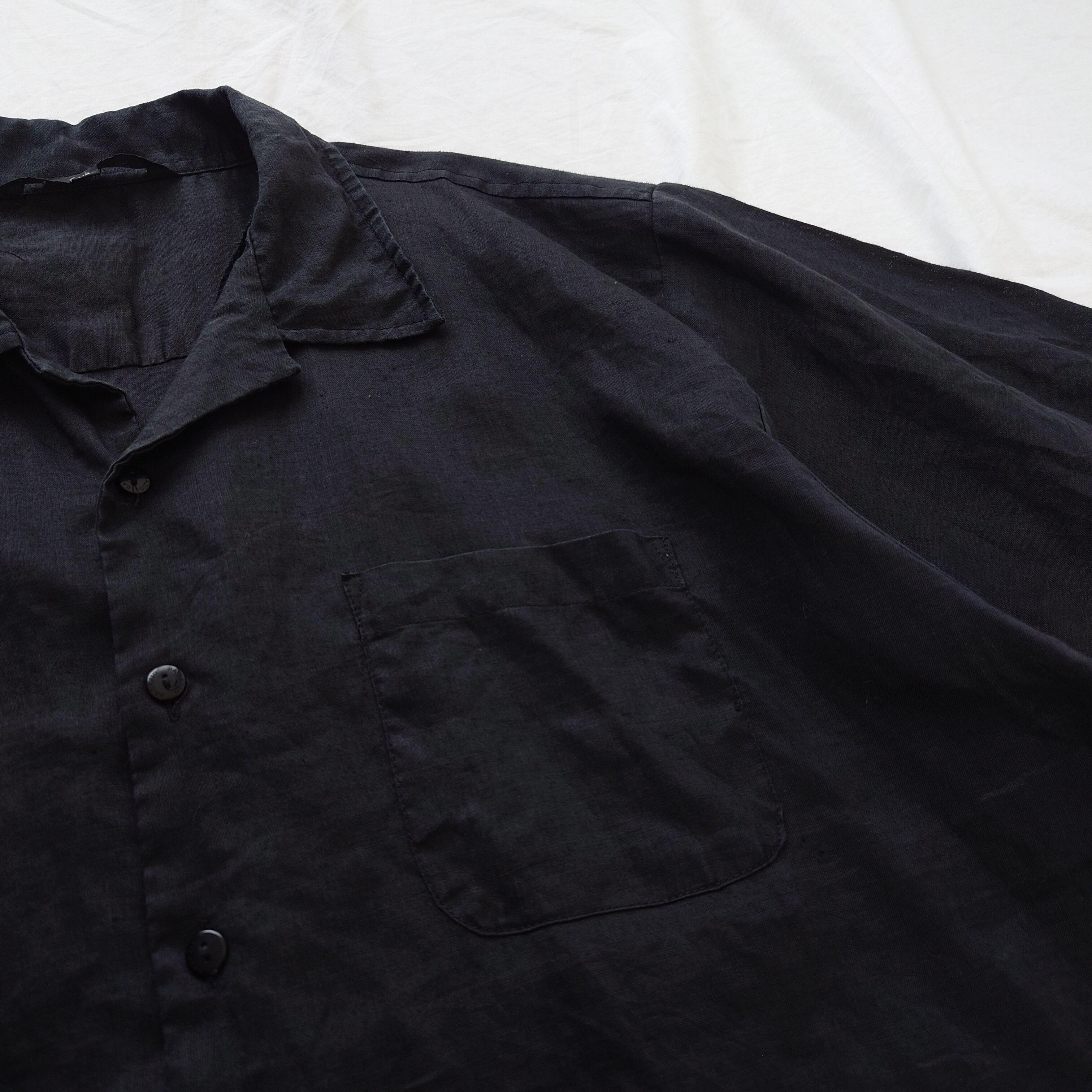【90~00s】古着 ブラック開襟シャツ ラミー素材 麻 ボックスシルエット
