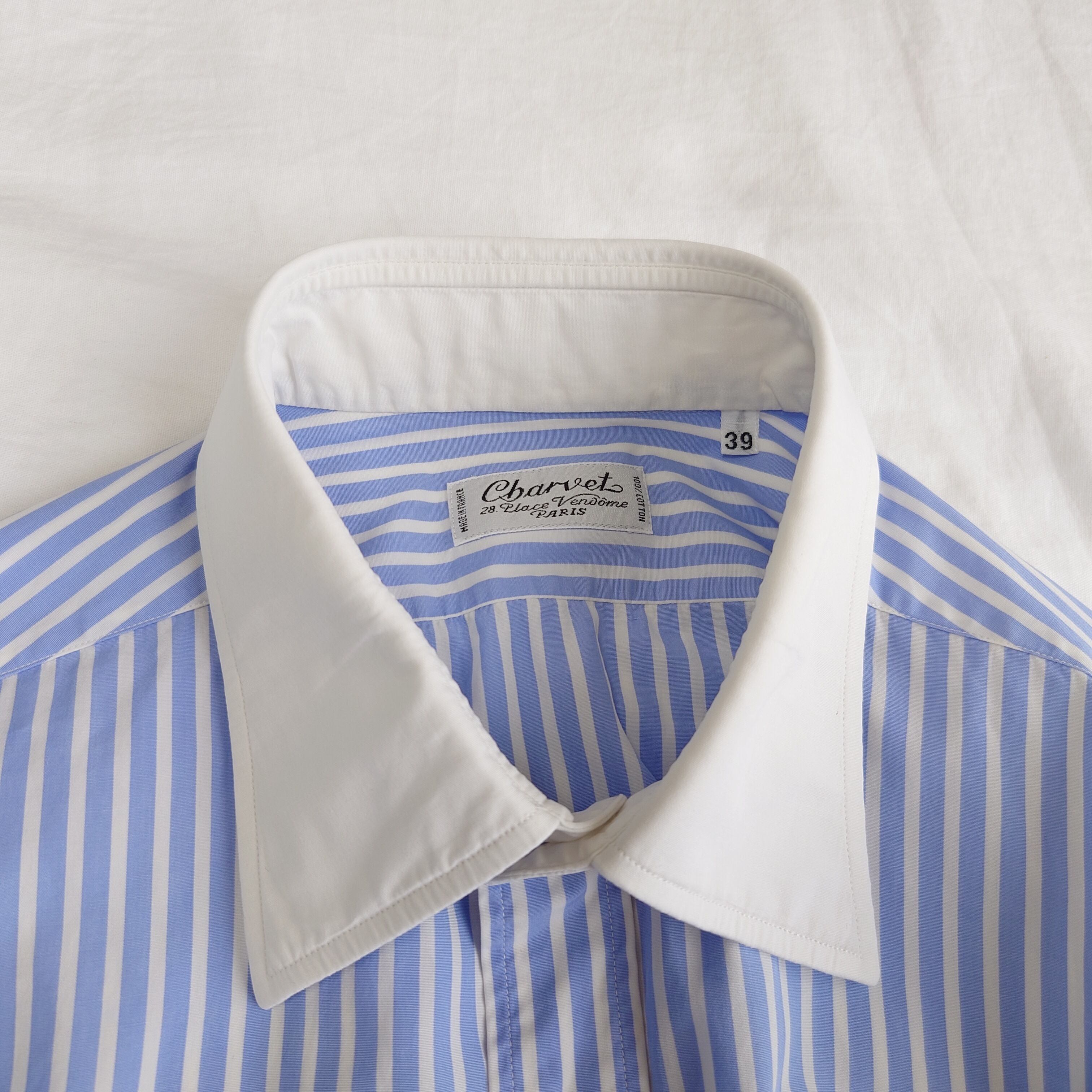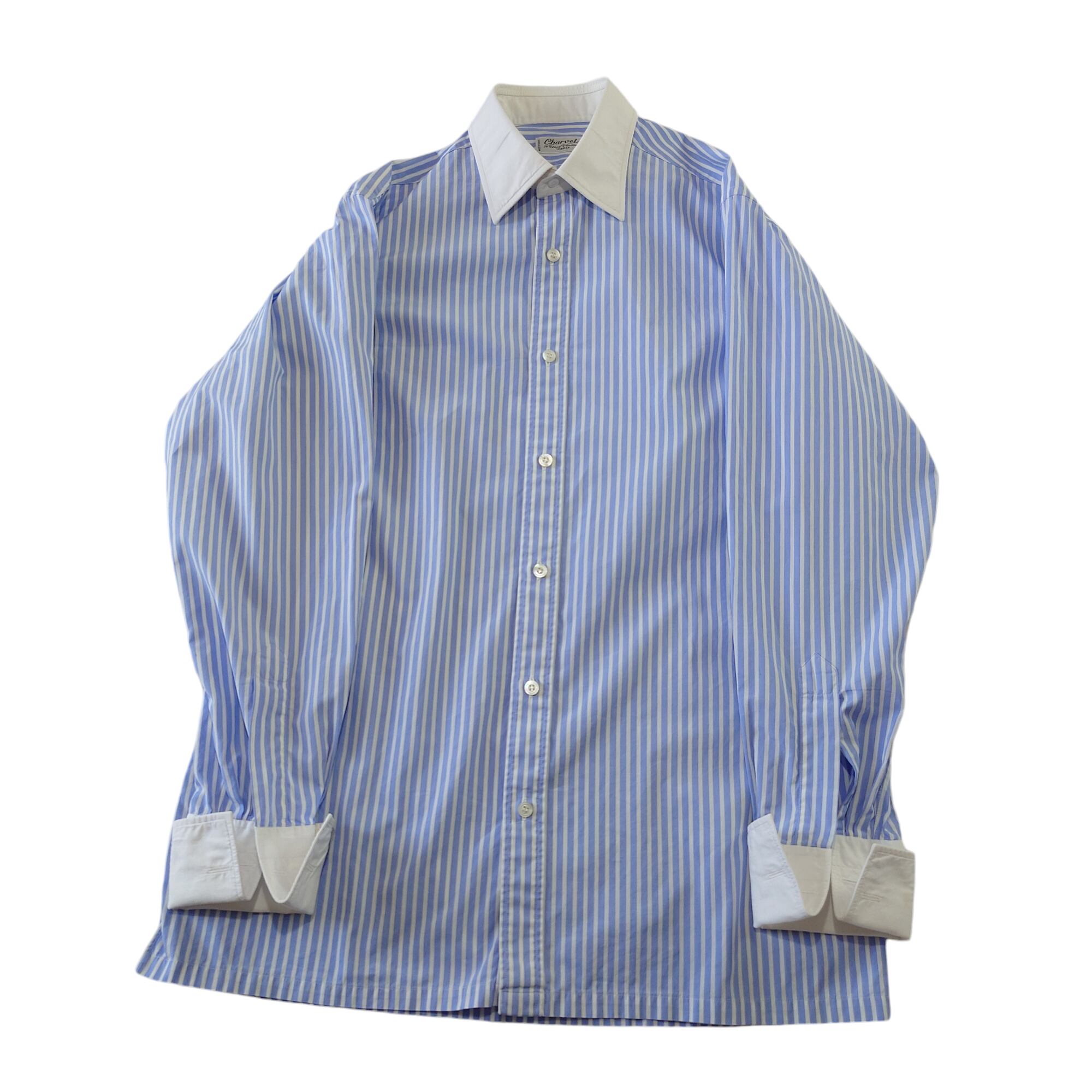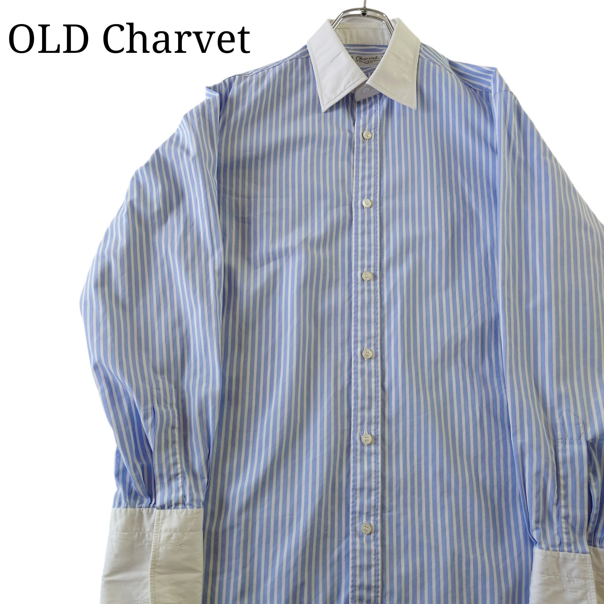 【made in France】OLD Charvet ストライプ 切り替え 青