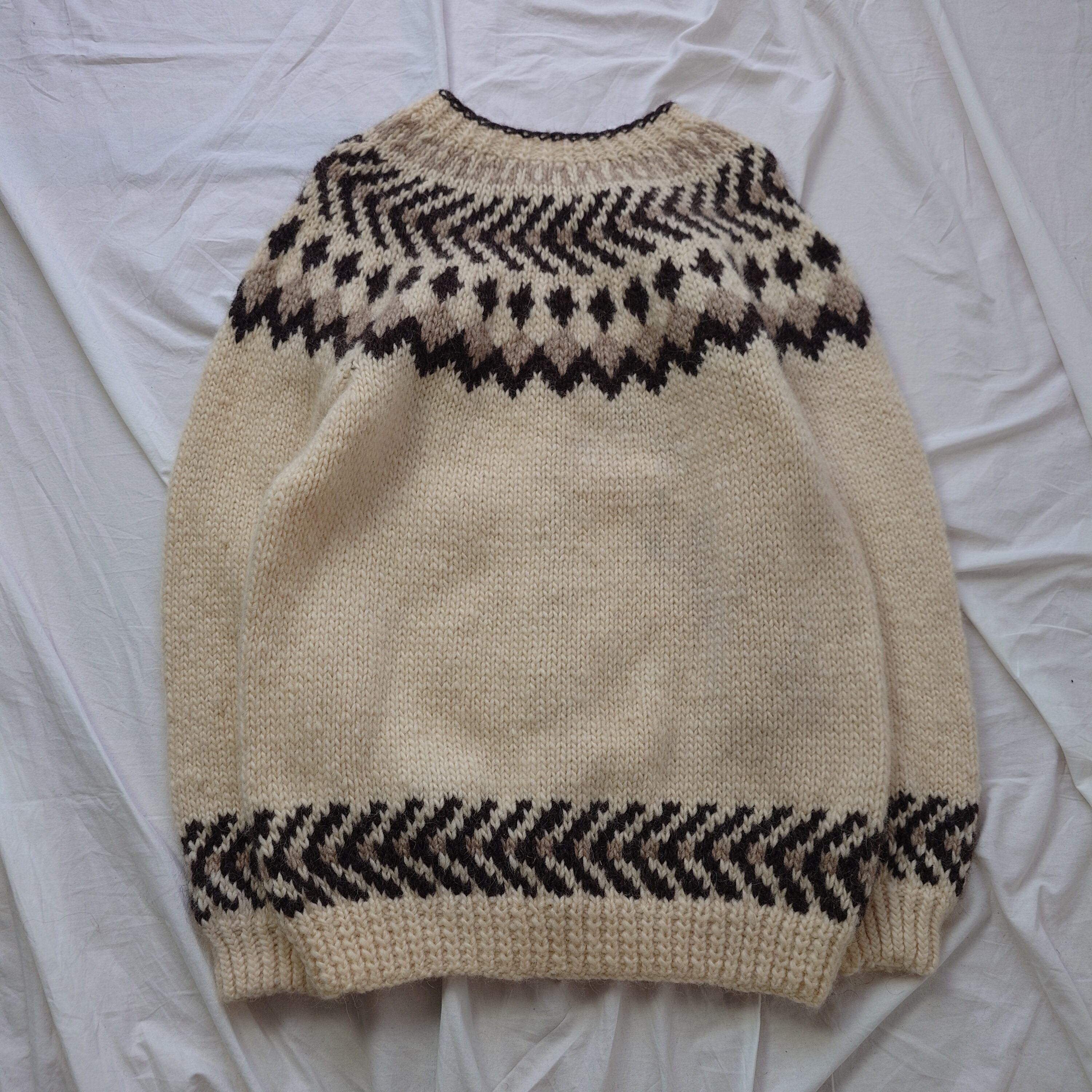 ノルディック柄のニットカーディガン。